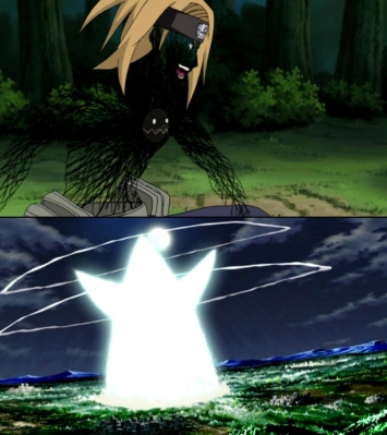 C0 Arte Definitivo(究極芸術, Kyūkyoku Geijutsu), C0 es el jutsu más poderoso de Deidara, una técnica utilizada como último recurso. Él revela una boca en el pecho. Después de deshacer los puntos de sutura, Deidara la alimenta con una gran bola de arcilla. La boca en el pecho tiene una conexión directa a su corazón. A continuación, amasa el Chakra directamente de los meridianos del corazón y lo mantiene haciendo sin interrupción hasta el momento de la explosión. Su chakra de explosivos se manifiesta en sus venas, fluyendo a través de su cuerpo. y luego se condensan en una esfera. La esfera se abre hacia arriba y hace estallar, destruyendo todo dentro de un radio de diez kilómetros.