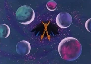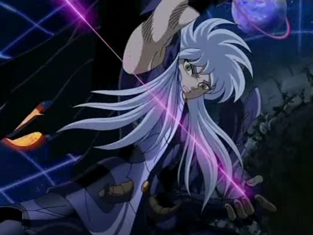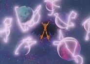 Kozuke aparece planetas detrás de él para luego destruirlos y enviar sus partículas y energía a Raito