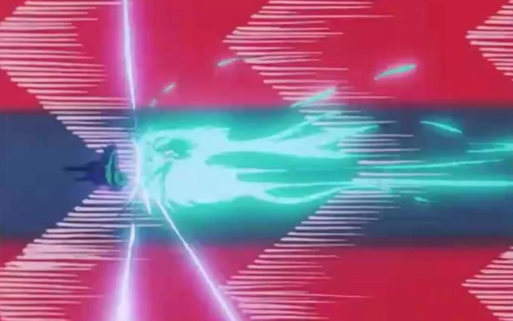 El Tornado Interdimensional de Kozuke atrae los lásers de Raito y los desaparece.